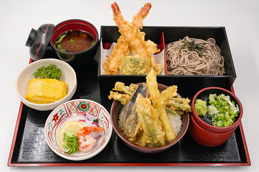 Vegetable tempura bowl / Tempura soba / Omelette / Vinegared dish / Nameko soup