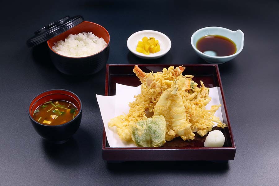 | 基 本 | 【えび×1・野菜かき揚×1・魚×1・野菜×1・ご飯・味噌汁・香の物】 |